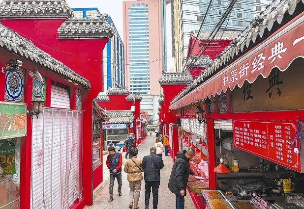此次中原街翻新改造把临街店铺都打造成了红墙碧瓦的古风造型,与周边高楼林立的现代城市景观交相呼应,成为青泥洼桥商圈一个别具特色的“逛吃”好去处。