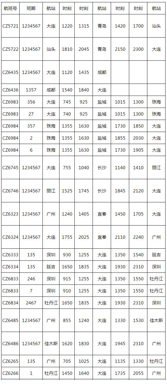 夏航季 南航计划在大连每日进出港航班103班次