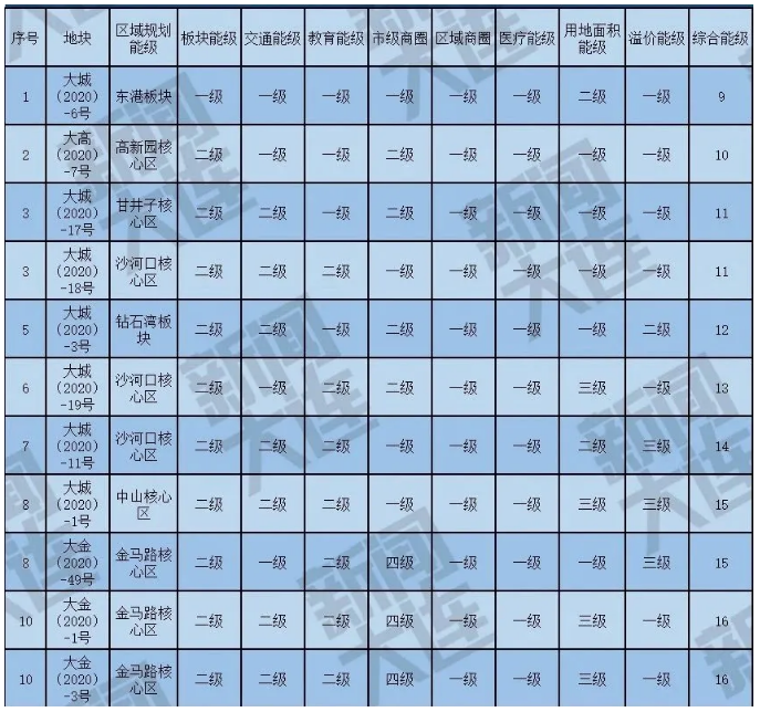 1.本榜单入选地块板块能级均为三级以上。