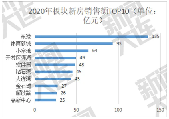 销量高、销售速度快,说明房源供应量大,购房者的认可度高。从2020年各板块新房销售额来看,东港、体育新城、小窑湾位列三甲。