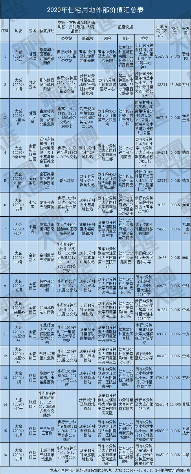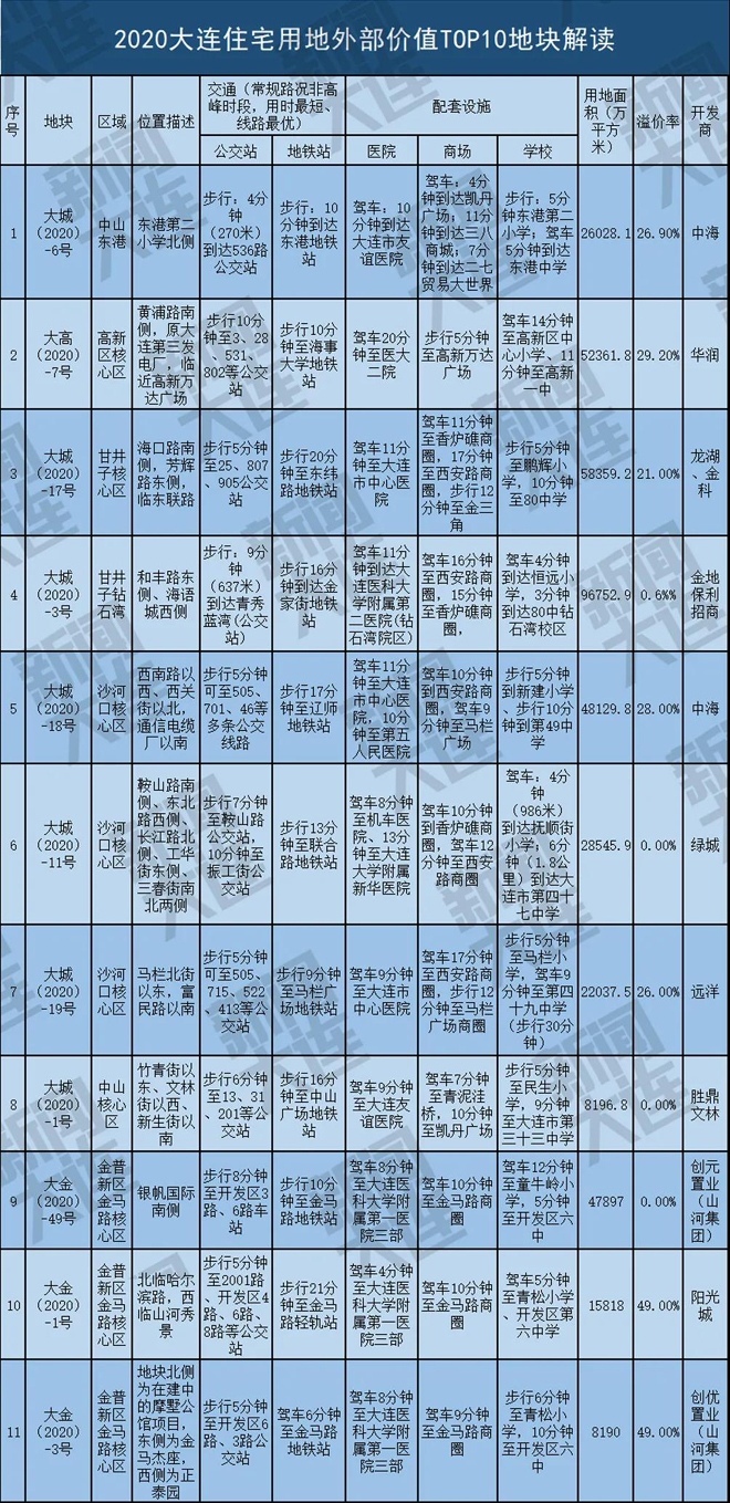 数据来源:大连市自然资源局公告,部分地块含配套商业用地。