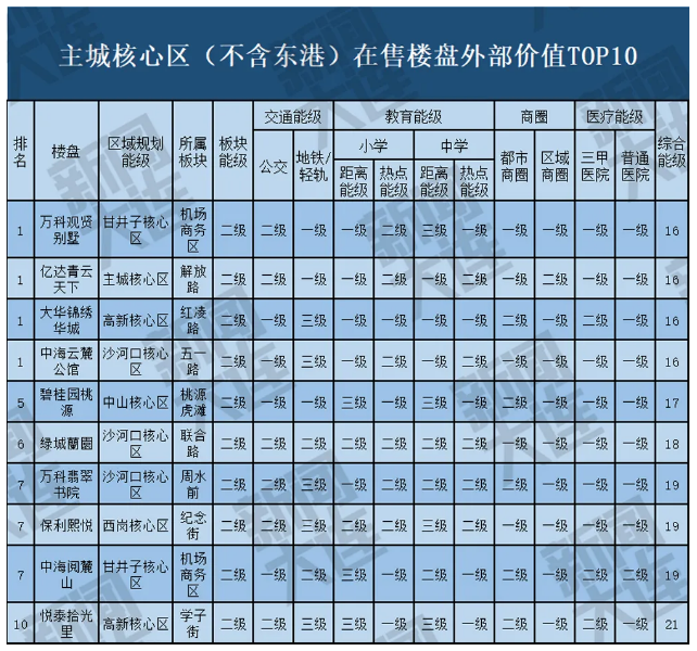在售楼盘外部价值TOP10解读