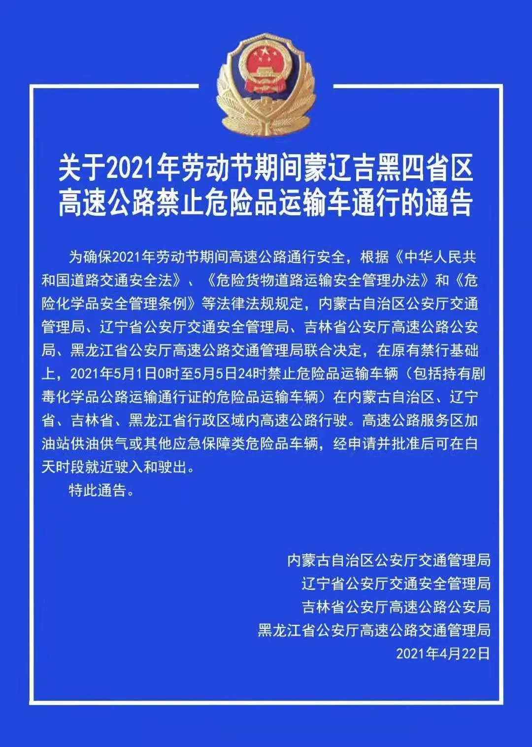 禁行通告!