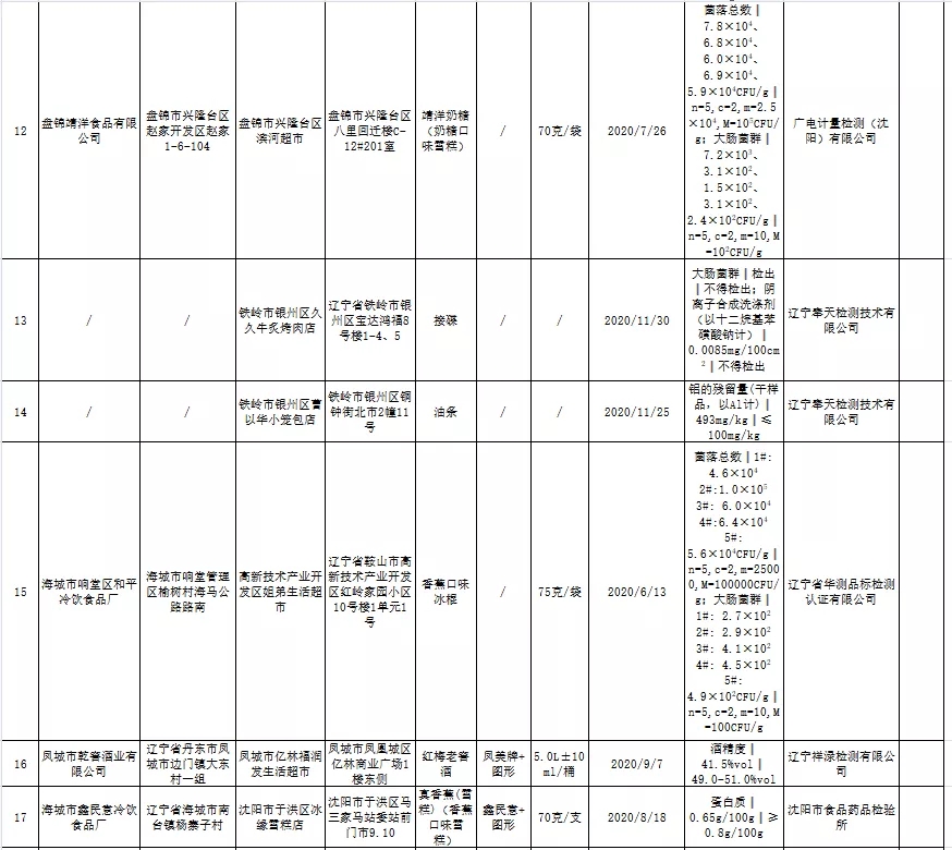 同时,抽检发现鞍山市立山区万嘉福食品厂生产的香辣鸡排汉堡、鞍山市宏谷食品加工有限公司生产的香酥饼、丹东市振安丰香食品厂生产的老式槽子糕、哈尔滨市康惠食品有限公司生产的面包皮绿豆饼等产品菌落总数超标。