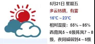 预计周五我市天气多云转晴,气温相比周四会有小幅回升,市区中午前后预计会来到23℃。天气再度由凉转暖,不过西南风稍大,白天风力5~6级阵风7~8级,建议大家尽量选择背风的地方进行户外活动。