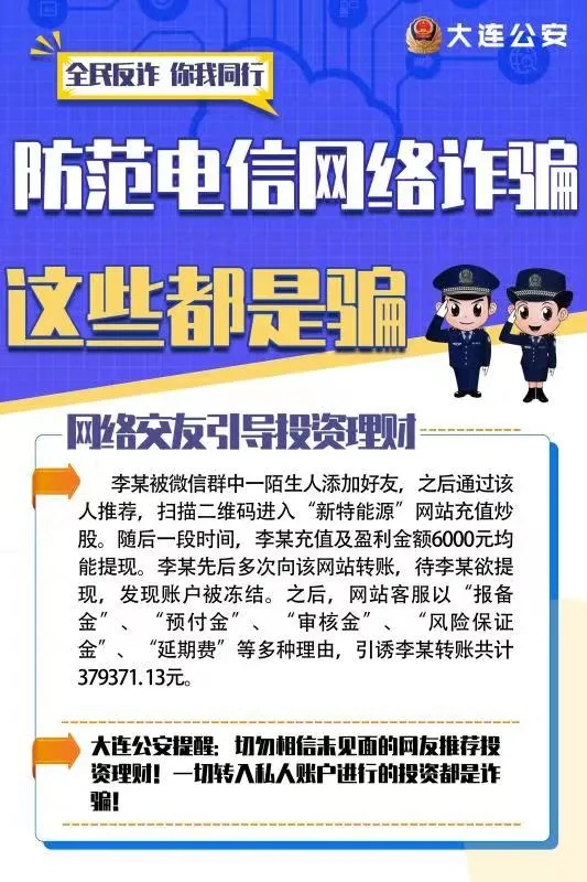 2. 不要轻信网络上没有资质的所谓投资专家、大师,不加全是陌生人的“投资群”,不轻信陌生人发来的“盈利图”,眼见不一定为实,也可能是诈骗分子设下的圈套。
