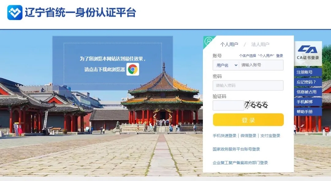 点击右上角“登录”按钮,弹出“辽宁省统一身份认证平台”界面;