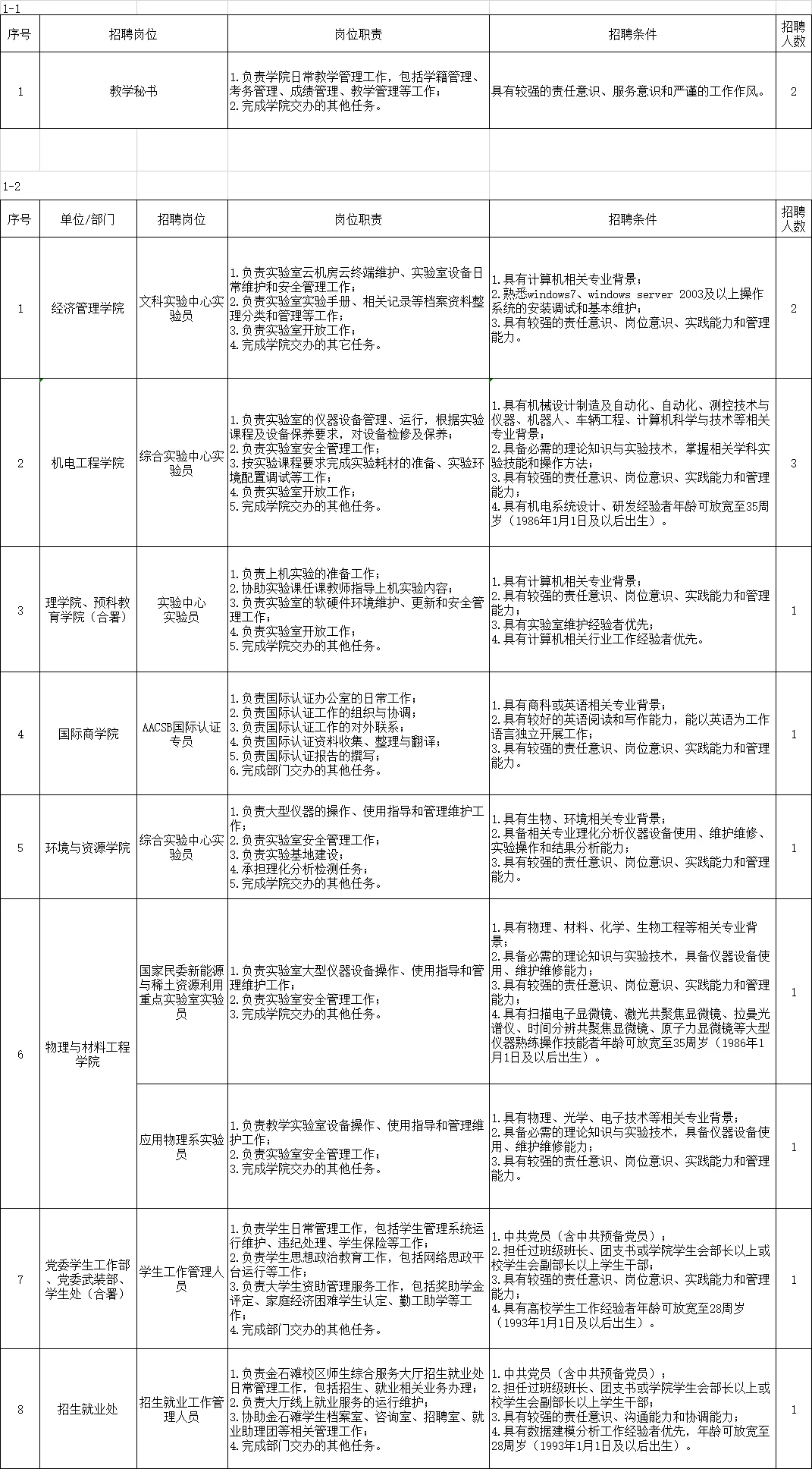 详见《大连海事大学公开招聘实验教师岗位信息一览表》(附件1)。