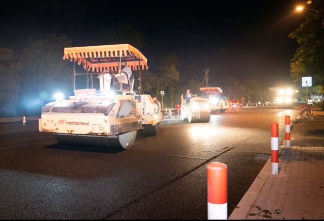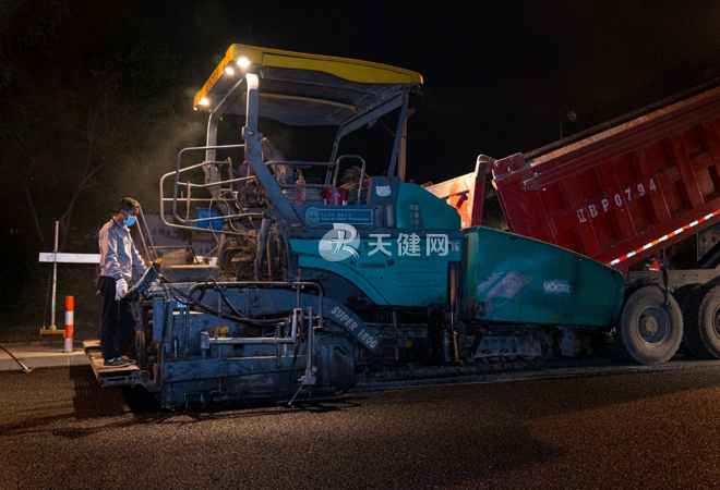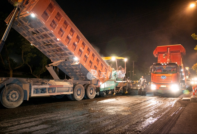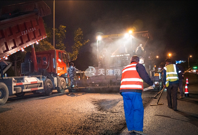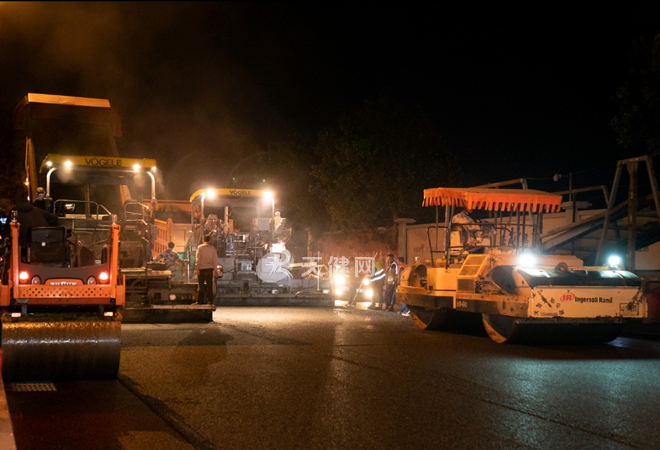 6月27日晚上10时许,记者在张前路北段与虹港路路口附近看到繁忙施工景象,十余台施工在车辆轰鸣作业,数十人在施工现场进行道路摊铺,动作十分娴熟。整个施工现场画面感如同大片,十分震撼。记者现场了解到,项目已经进入尾声,即将完工。