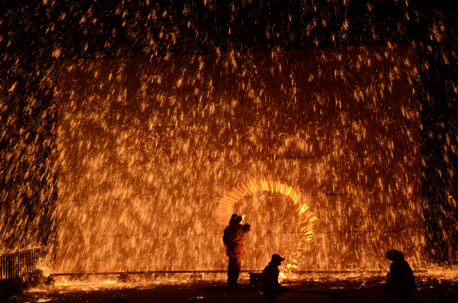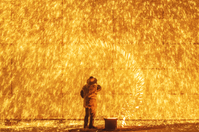 流星如瀑 非遗文化“打铁花”惊艳滨城夜空