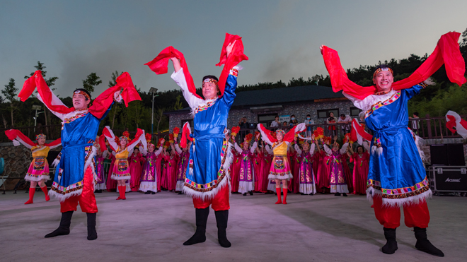 为了让群众近距离感受非遗魅力,旅顺口区小南村七彩南山景区特邀央视春晚打铁花团队来连。7月16日晚8时,4位来自河北蔚县的非遗打铁花传人为游客表演了传统民俗“打铁花”。一棒下去,流光溢彩飞溅起满天火星,高超的技艺让人叹为观止,欢呼雀跃。