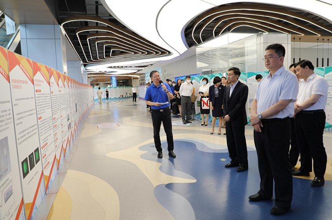与会人员前往科技成果展示区参观,4个项目进行路演。展示区共展出大连各高校和科研院所的科技成果300余项,包括生物医药、新材料精细化工、新一代信息技术、新能源节能环保和高端装备制造五大重点产业方向。李鹏宇参观后指出,金普新区要精细化推动高技术产业项目落地、发展,要聚焦重点领域进一步完善政策,鼓励、吸引人才,以促进更多科技成果在新区转化。