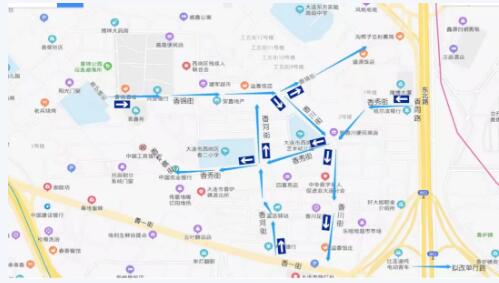 五、香川街的香锦街至香一街路段,改为一切车辆由北向南方向行驶的单行路;