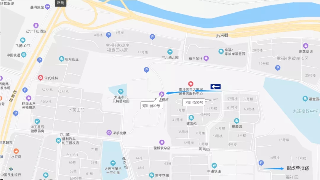 七、健龙苑小区北侧无名路的河川街五十五号至河川街二十九号路段,改为一切车辆由东向西方向行驶的单行路。