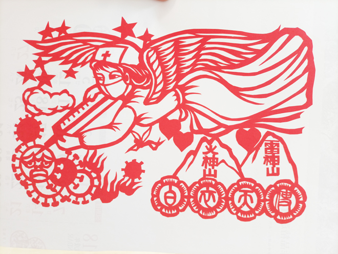 生活中融入了剪纸艺术,刘天锡的生命状态日益丰盛。1995年,在《文汇报》发表剪纸作品《风筝曲》之后,他不断开拓新的思路,有了不错的作品都会向报社投稿,1997年,他的剪纸作品《峥嵘岁月》发表于《解放日报》;2008年北京奥运会期间,《北京欢迎您》发表于《大连日报》;2011年《妈妈教我一支歌》发表于《中国教育报》……2006年,刘天锡参加大连电视台“剪纸王”挑战赛,获得铜奖;2011年,剪纸作品《峥嵘岁月》荣获(建党九十周年)全国百名剪纸艺术家“红色记忆”剪纸大赛金奖;《峥嵘岁月》又荣获大连市第十二届文艺“金苹果”奖中的文艺优秀创作奖;2019年,刘天锡荣获大连民间文艺70年70人“优秀人物奖”;2020年,作品《白衣天使》被评为全国抗击疫情剪纸创作大赛金奖。