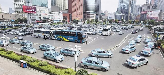 在大连火车站站前广场,记者看到出租车上客区有三排车道,导致乘客拥挤在三排车流中分别上车,人车混行的隐患不少。同时,有多台候客出租车停在售票处门前斑马线上,购票或进出停车场要从出租车流中穿行,另有几辆大客车停在停车场白色网格线区域。在站前广场西南侧的公交枢纽站台,记者看到有多台三轮“摩的”在候客或拉客,有的车体印有“残疾人代步车”字样或标牌。有候车乘客告诉记者:“他们多数并不是残疾人。”