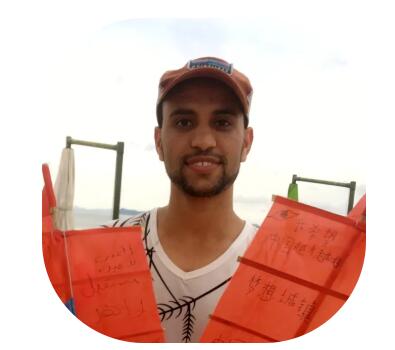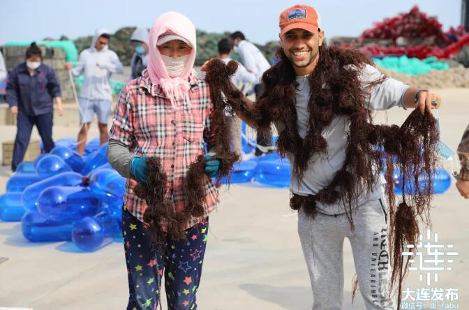 来自巴基斯坦的留学生由比对一切事物都充满好奇,从夹菜(为养殖鲍鱼准备饵料)到整理浮力球,他都要动手尝试;在网箱养殖现场,他将海参、鲍鱼、牡蛎放在掌心仔细端详;在杨家村海滩放海灯时,他特意换上了特色民族服装。