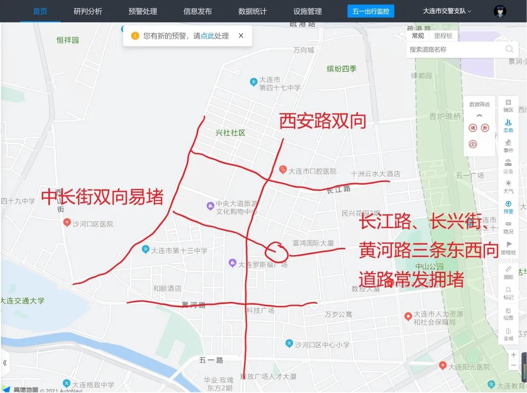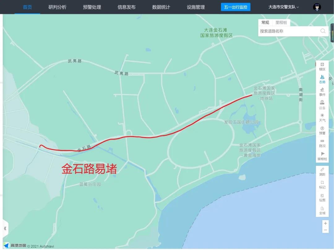假期首尾日高峰时段的鹤大高速十里岗出入口、冠军路至新星街出入口、老虎屯大桥至大窑湾疏港高速出入口,沈海高速金州出入口、国泰路至三十里堡服务区、海皮公路至国泰路、海湾大桥至海皮公路,以上点位及周边线路车流量比较大,波峰期将会出现严重缓行情况。