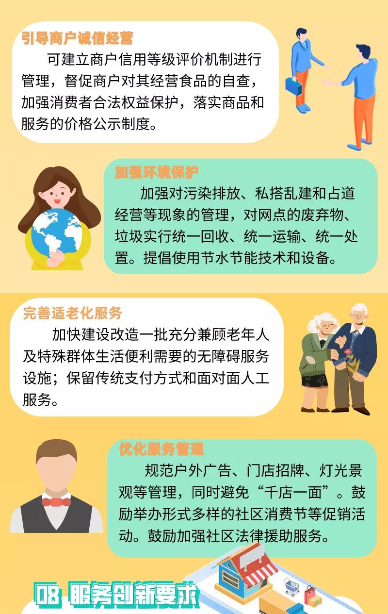 在业态配置方面,建设指南也对各地提出了明确要求。各地应优先配齐基本保障类业态,因地制宜发展品质提升类业态,优先发展居民对生活品质提升最迫切需要的老年康护、特色餐饮、运动健身、新式书店、幼儿托管等业态。还要加快菜市场标准化改造升级,重点发展品牌连锁店,构建多层次早餐供应体系等。