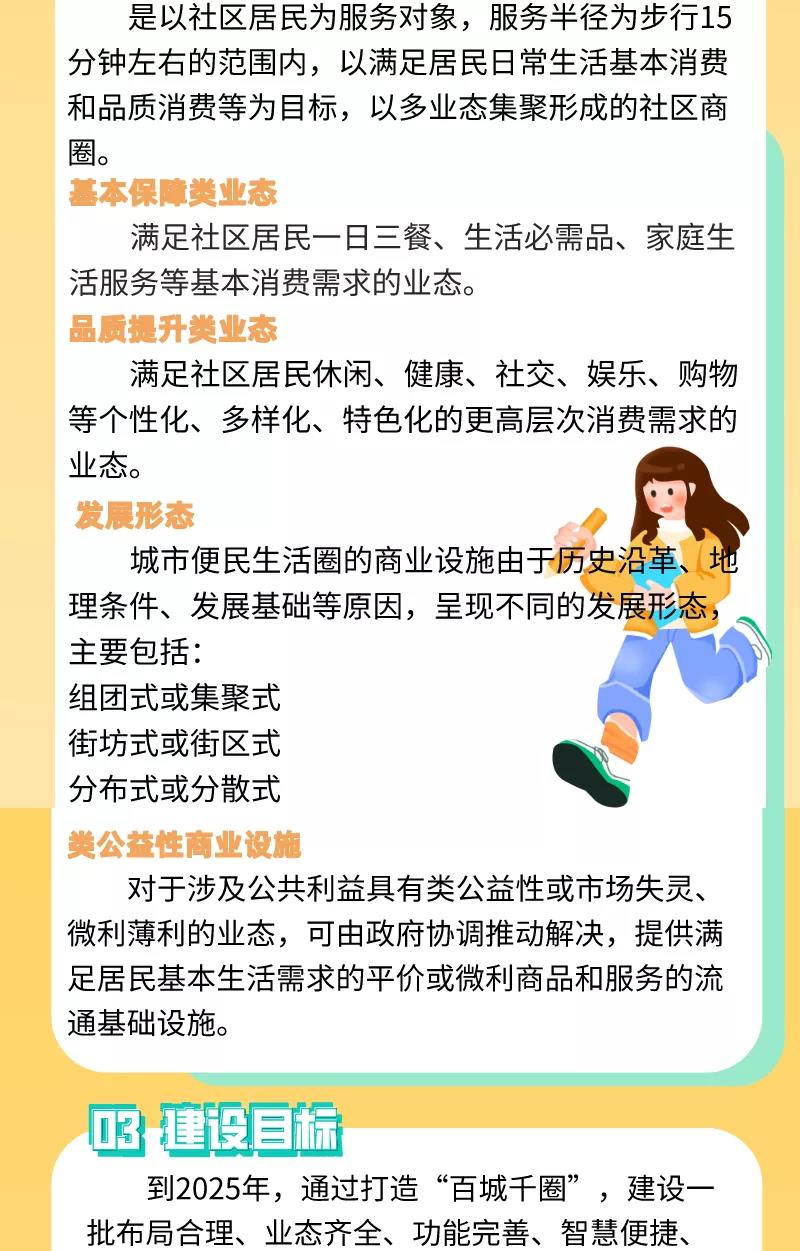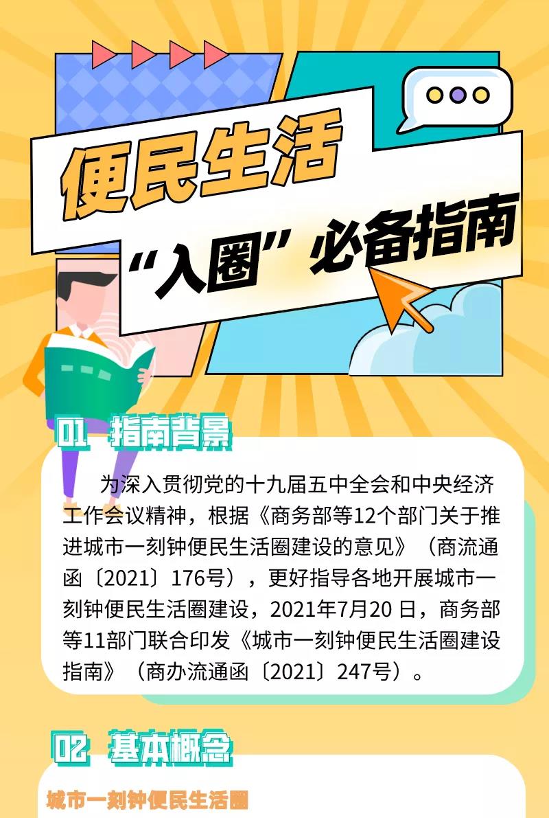 根据商务部等部门发布的《城市一刻钟便民生活圈建设指南》,商圈内的具体业态,既包括满足社区居民一日三餐、生活必需品、家庭生活服务等基本消费需求的业态,也包括满足社区居民休闲、健康、社交、娱乐、购物等更高层次消费需求的业态。