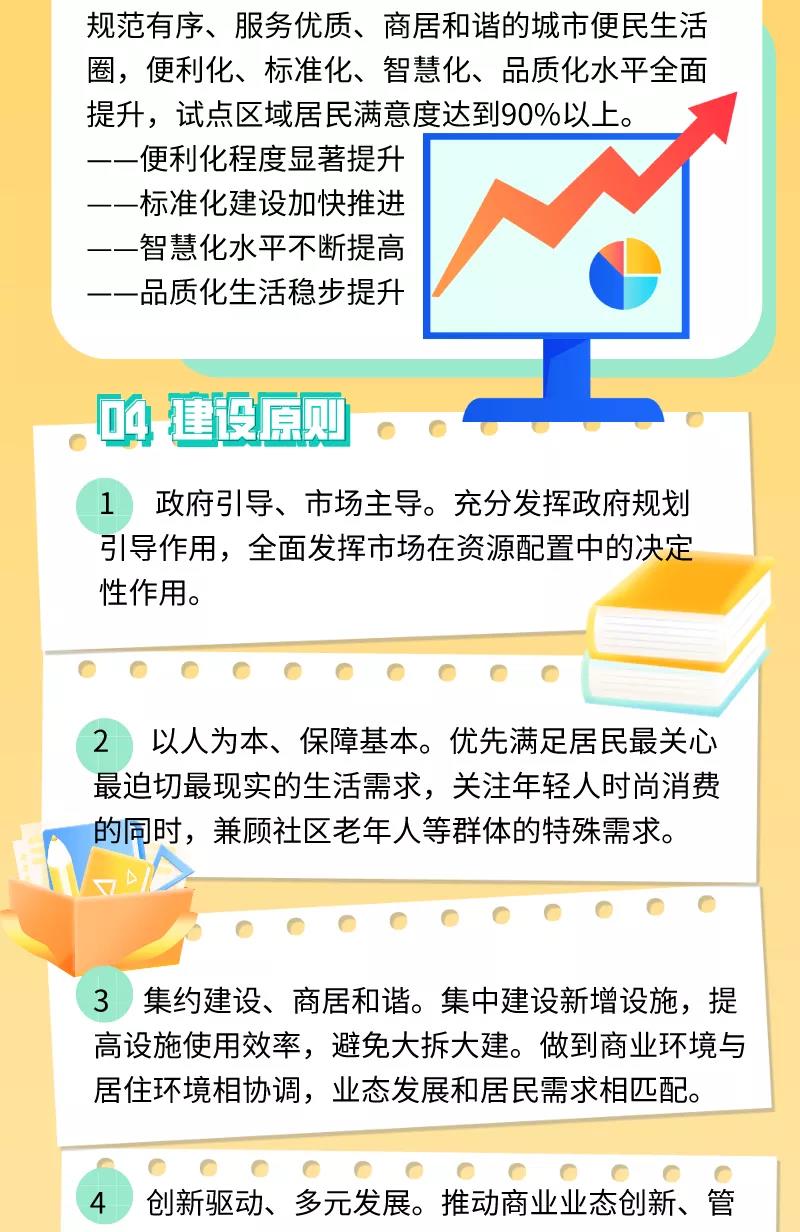 建设指南还给出了更具体的建设目标。到2025年,一批城市便民生活圈便利化程度显著提升,商业网点布局更加合理,功能业态更加齐全,能够满足居民就近便捷消费的基本需要;标准化建设加快推进,商业设施配置和服务供给更加规范,管理运营更加专业精细;智慧化水平不断提高,新技术新业态新模式在便民生活圈应用场景更加广泛,线上线下深度融合,数字化转型进度加快;品质化生活稳步提升,品牌连锁和特色化建设不断增强,商品和服务供给更加丰富、优质、安全,设施环境持续改善,传统消费加快升级,服务和体验消费比重不断扩大。试点区域居民满意度要达到90%以上。