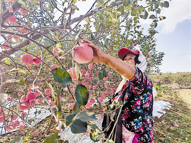 瓦房店市赵屯乡郑屯村果农开始采收红富士苹果。 大连新闻传媒集团记者李小华 摄