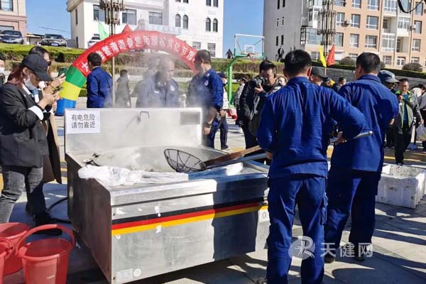 海参现场蒸煮。(图片由受访单位提供)