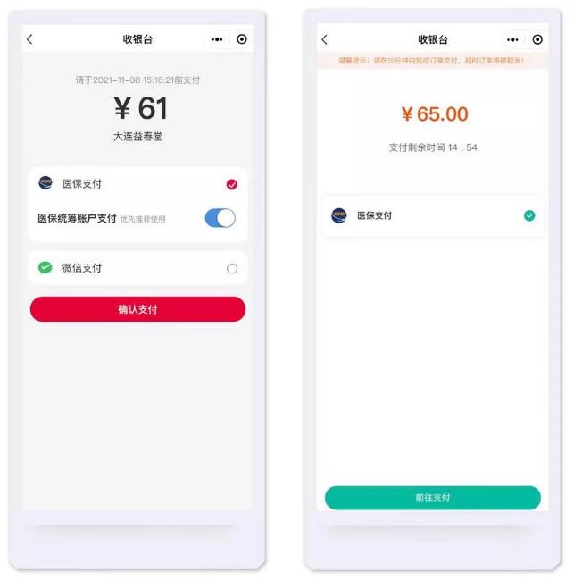 结算时可选择医保支付
