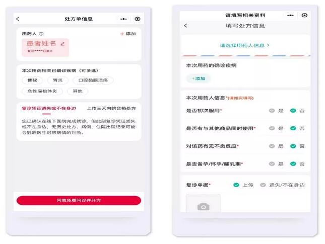部分药房处方药信息填写页面