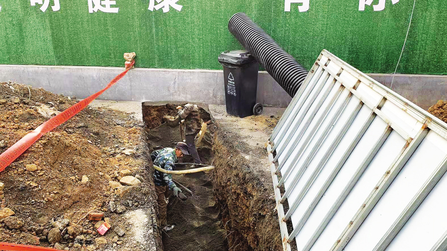 发生事故的施工坑,是从石门街南侧的建筑工地内延伸出来的。坑深2米,坑底正在铺设下水管道。工人说,工地挡板区域内是一处在建楼盘,这个施工坑算是“附属工程”。10日上午,土堆和写有“外来车辆禁止入内”的隔离墩围死了坑的外沿,工人还用两根下水管道作为“围栏”,进一步加强防护措施。