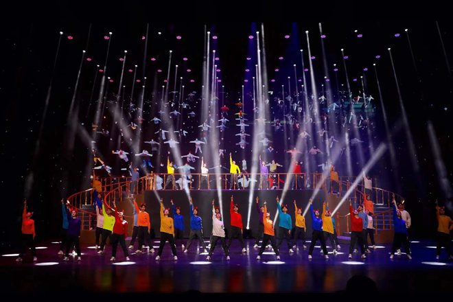 纪实舞台剧《拥抱·青春》把大艺师生共同弘扬伟大的抗疫精神,用实际行动积极响应习近平总书记对新时代青年提出的要求演绎得淋漓尽致。从校领导为全校学生送去充满东北年味的“杀猪菜”到千人广场舞,从年轻辅导员与自己三岁小孩只能在校门口隔栏相望诉说相思之情到学生们自发在楼道中激情高唱《拥抱春天》和《没有共产党就没有新中国》,舞台剧中的每一幕,都是真实发生在校园的抗疫“进行时”。全剧有太多太多感人泪目的高光时刻,而这些真实来源于大艺校园中涌现出的那些平凡英雄和感人事迹。