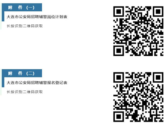 1、《大连市公安局招聘辅警报名登记表》3份(附件2,需本人签字);