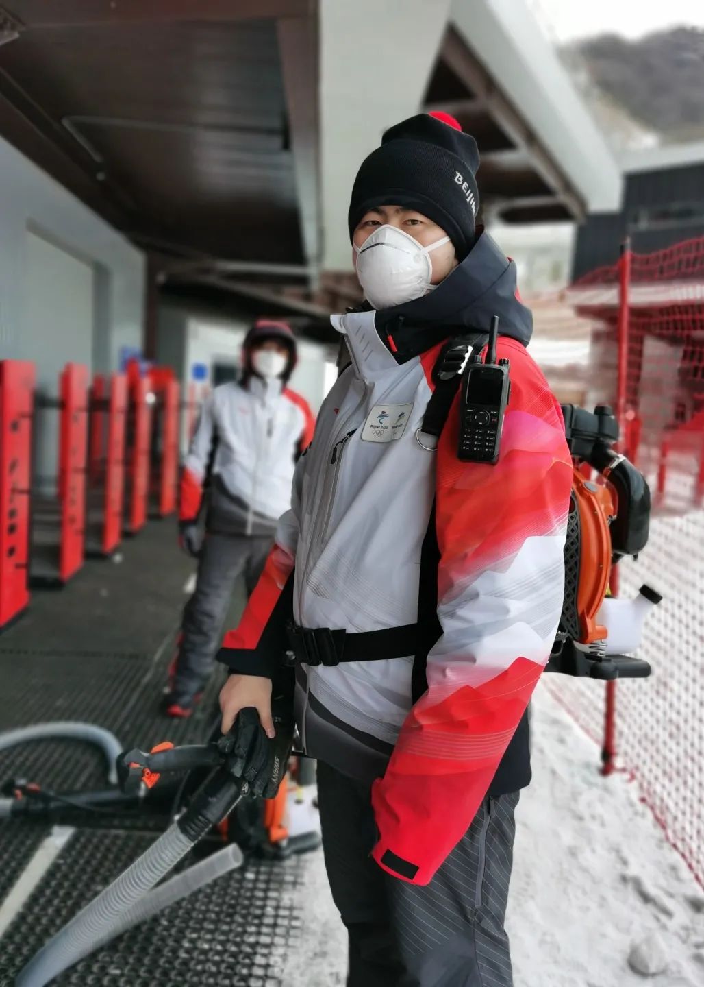 所有NTO每天3点多起床吃早饭,然后上山,在开赛前对3公里长的赛道检查清理、配合外籍专家给赛道注水、架设安全网、平整雪道;记得2月13日大雪后,在山上体感温度至少零下25℃,十分危险,但全体NTO都积极地投入到了清理赛道积雪的工作中。