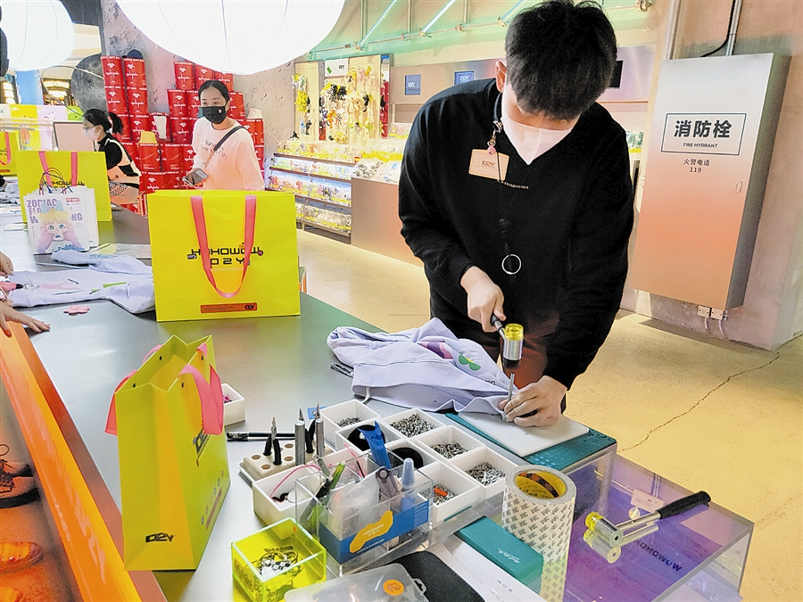“相信原创的力量,人人都是设计师”,在罗斯福广场三楼的一家DIY店内的消费者说,自己就是被这句话吸引驻足,感受一下“设计师”的身份,在享受“慢生活”的同时设计出一款独一无二的专属服饰。
