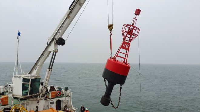 据了解,此次换标作业是将庄河辖区内庄河港航道、黄圈码头航道共计32座冬季设置的冰期灯浮标更换为直径2.4米的柱形灯浮标,目视效果将得到极大改善。