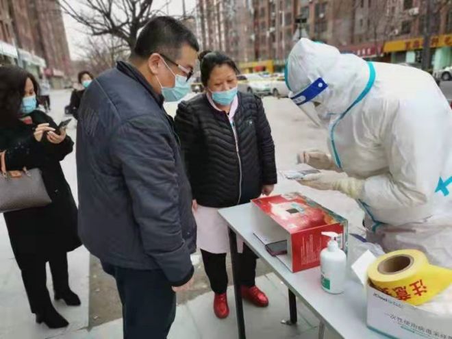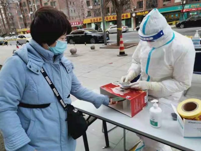 3月16日傍晚,椒金山街道金荣社区核酸采样点出现了个“扫码神器”,大大提高了核酸采样的速度,而且还安全。居民纷纷点赞,志愿者们直呼“太神了,超给力!”