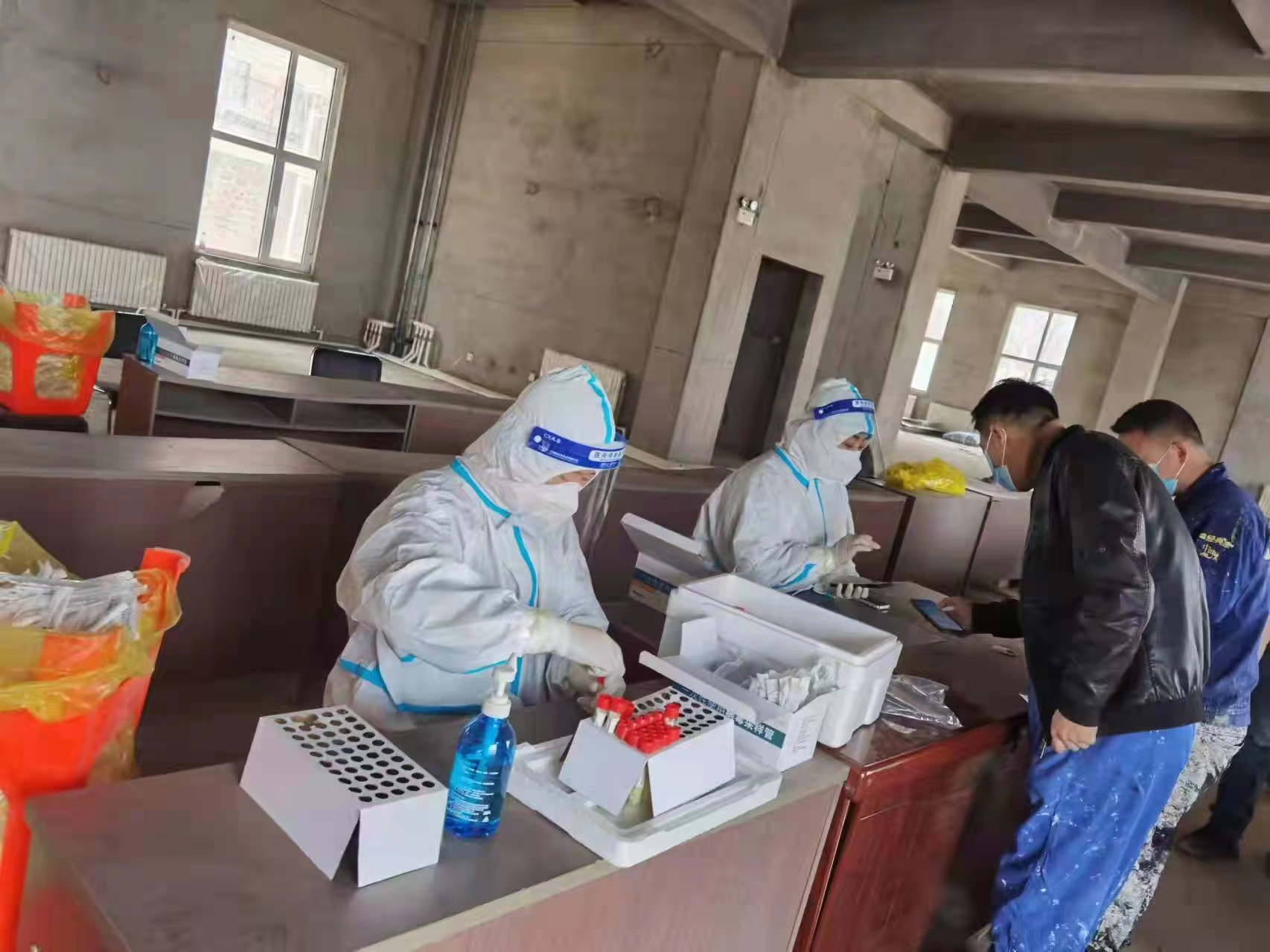 3月18日早上,伴随着疾驰的大巴车,贾广伟所在核酸检测医疗队很快到达了指定核酸点——土城乡王崴村。一早上核酸采集工作在寒风中有序进行,就在贾广伟扭头接过身边医护人员递过来的棉签时,发现身边和他搭班的护士正是妻子于彤彤。夫妻俩配合默契,从防护面罩中透出坚定的眼神,都是给彼此最大的鼓励。于彤彤说:“没想到我俩竟然分在一个检测点共同工作,感觉很意外但很幸福,这也算是给我们新婚的最好的礼物吧。”