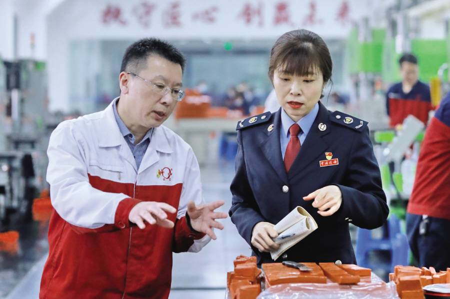 为落实组合式税费支持政策,普兰店税务局工作人员走访制造业企业。
