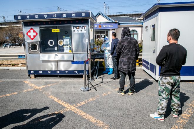 在大连收费站路边,专门为货车司机设置免费核酸检测点和爱心驿站。
