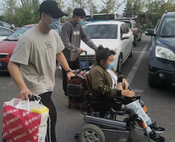 会计系党支部教工党员王歧山来到思诚苑4栋109寝室,这里住着一位“轮椅女孩”——于艳苹。于艳苹是会计系2019级会计6班学生,从小因病导致身体残疾,高额的治疗费用使这个家庭负债累累。从入学之初,学校党总支就给予于艳苹以特别的关怀,特许她的母亲“陪读”,并安排为公寓保洁以获得收入。会计系党支部组织学生成立爱心志愿小组接送她上课,党员教师成立助学团队对其一对一课后辅导。两年半以来,爱心志愿小组的同学风雨无阻,天天陪伴、护送,帮她顺利越过路途中的每一级台阶和楼梯。