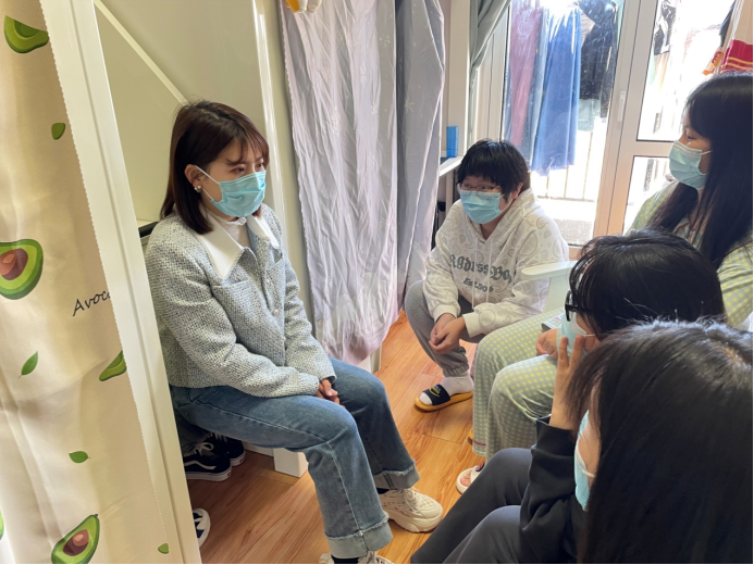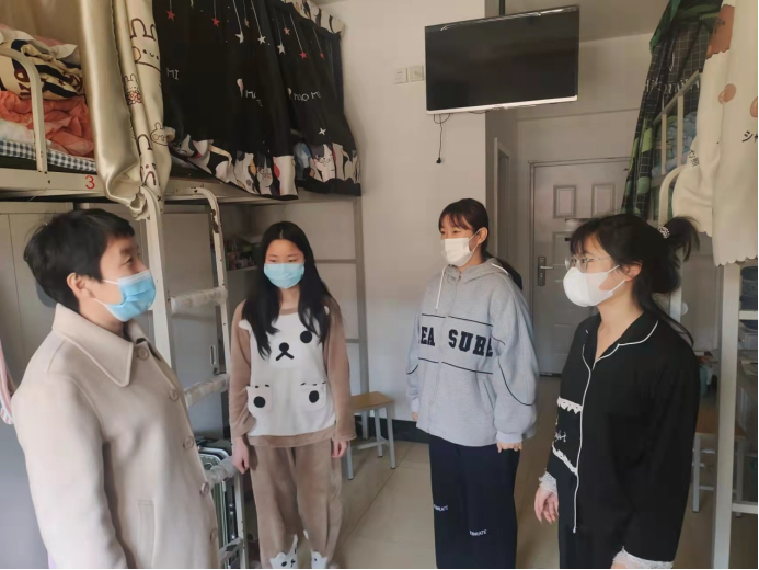目前学生都在线上上课,在寝室走访中,王老师与学生们进行面对面深入交流,及时听取并反馈他们的诉求,尽全力妥善解决所遇困难和问题,缓解他们焦虑的情绪,督促同学上好网课,调适身心,锻炼身体,减少网购,整理好寝室卫生,养成良好的生活习惯。