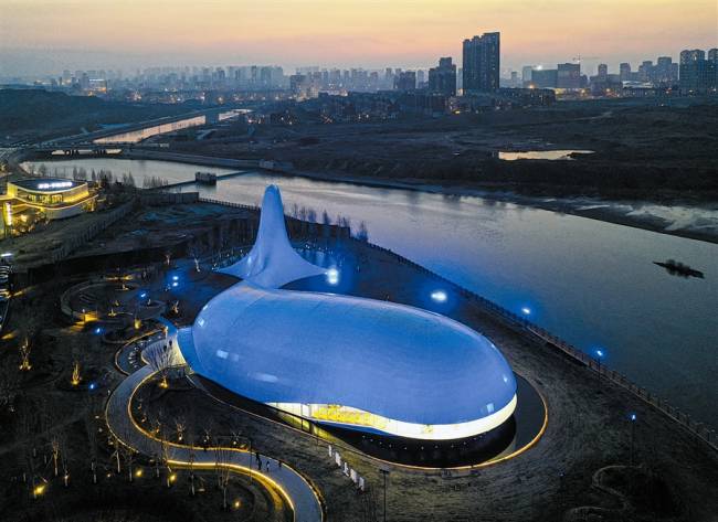 近日,一头“鲸鱼”在大连市悄然成了一个地标性的新网红。白天,它是一头游弋在河口的“白鲸”;晚上,它蜕变成如梦如幻的“蓝鲸”遨游大海。特别是那条高达23米的渐变色“鱼尾”,更是奇妙,如梦如幻。它,美出了圈!