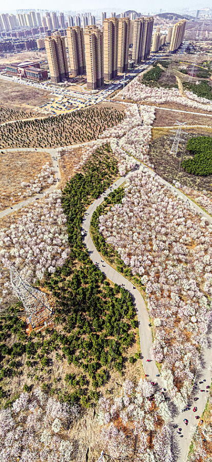记者的无人机升空后,从高空俯视公园内,大面积的桃花连成一片,漫山遍野。远处的城市与这片桃花遥相呼应,在蓝天的承托下非常壮观,而游人漫步在桃花林海中,不但可以欣赏这漫山斗艳的桃花,而桃花特有的香味,也会让人心旷神怡。不少市民慕名而来,一睹这处桃花源的风采。这里俨然成了一处网红打卡地。