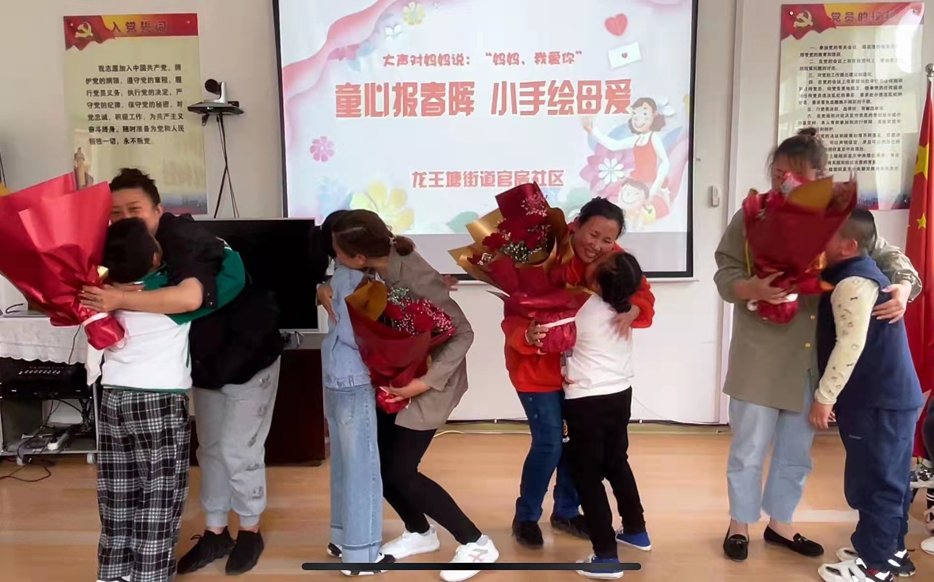 “亲爱的妈妈,今天母亲节,我想大声的对你说:妈妈我再也不惹你生气了,妈妈我爱你,您辛苦了!”在最后爱要大声说出来环节,孩子们纷纷站到台前,大声向妈妈们述说着心中的感激和爱,并将鲜花和手绘的图画送给自己的妈妈,妈妈们感动的和孩子们互相拥抱。