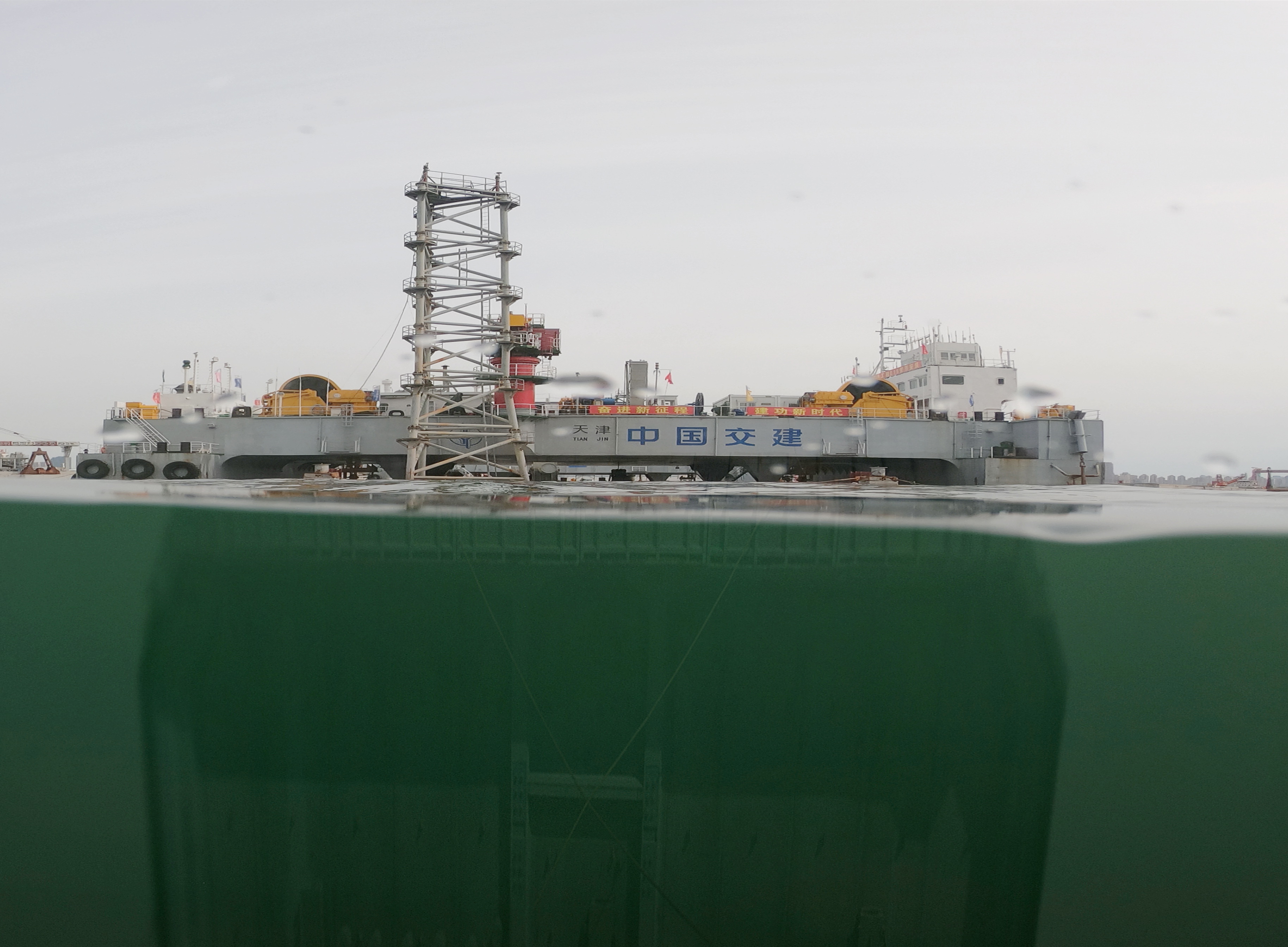 王鹏飞:“管节安装前,项目团队继续优化整平工艺,全程使用整平船自动定位和调平系统,有效保障了整平作业的精度,为E15管节安装夯实了基础。”