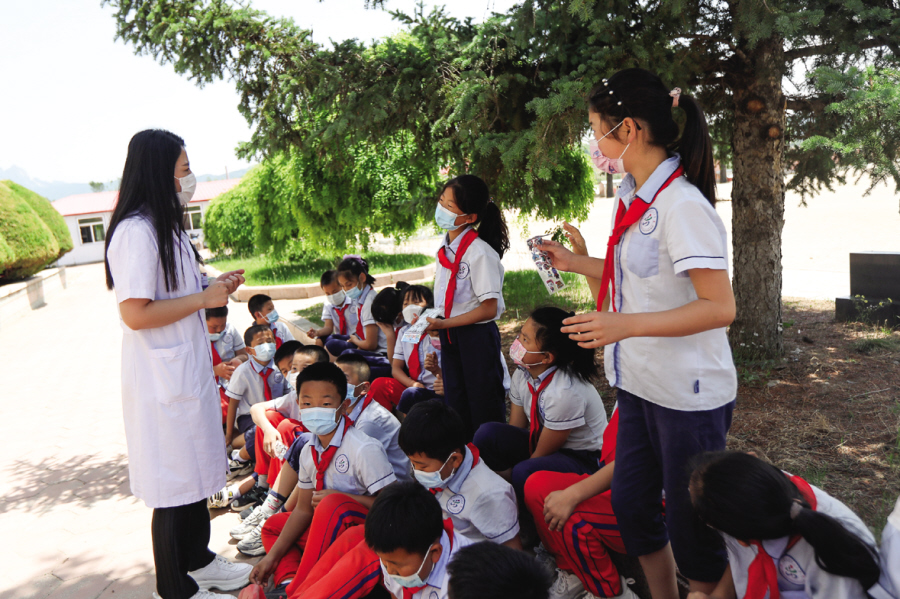6月2日上午的课间操刚刚结束,一堂室外医护课开始了,我们都很期待。