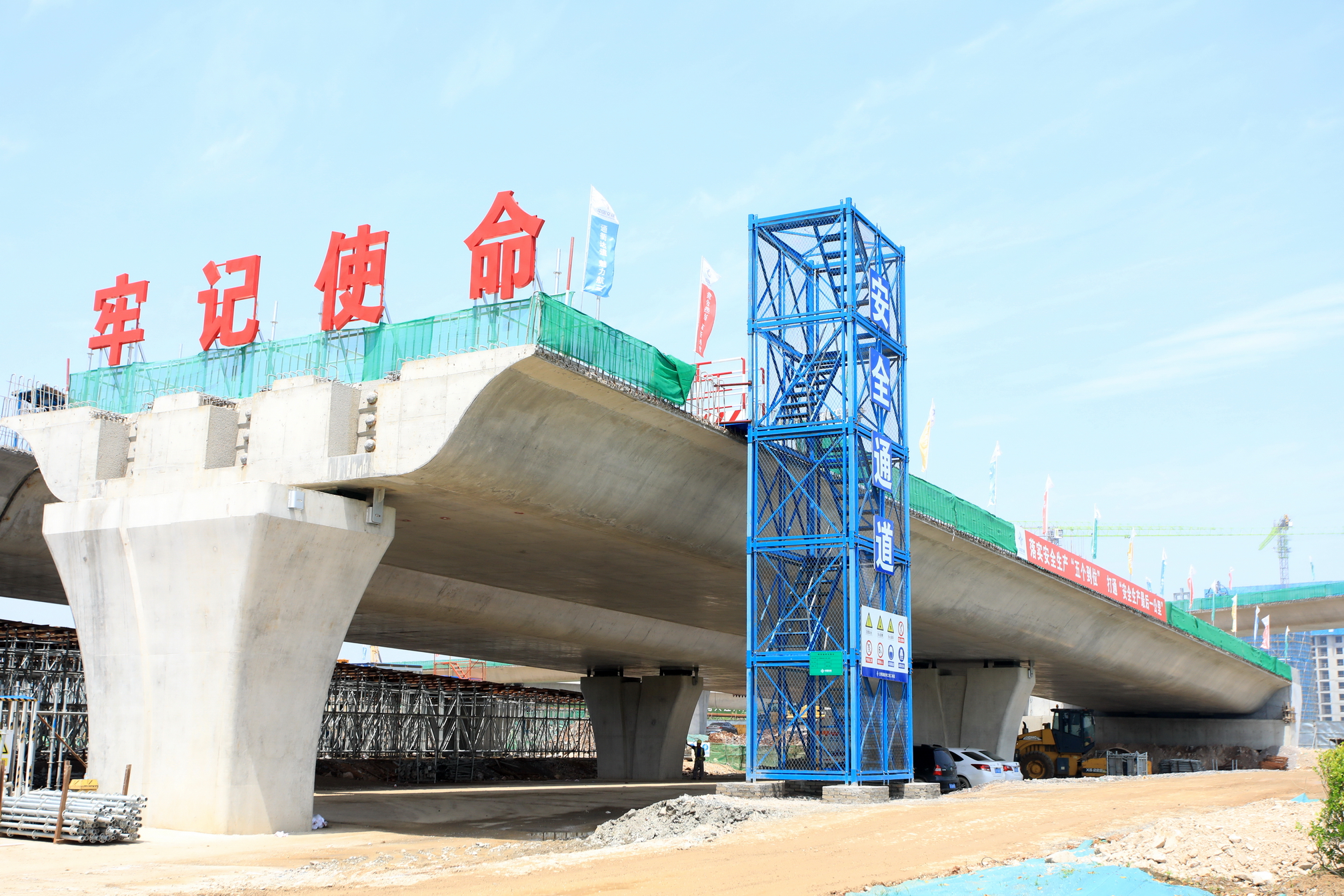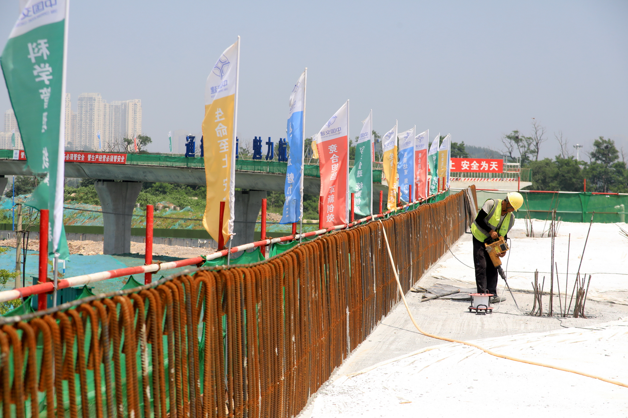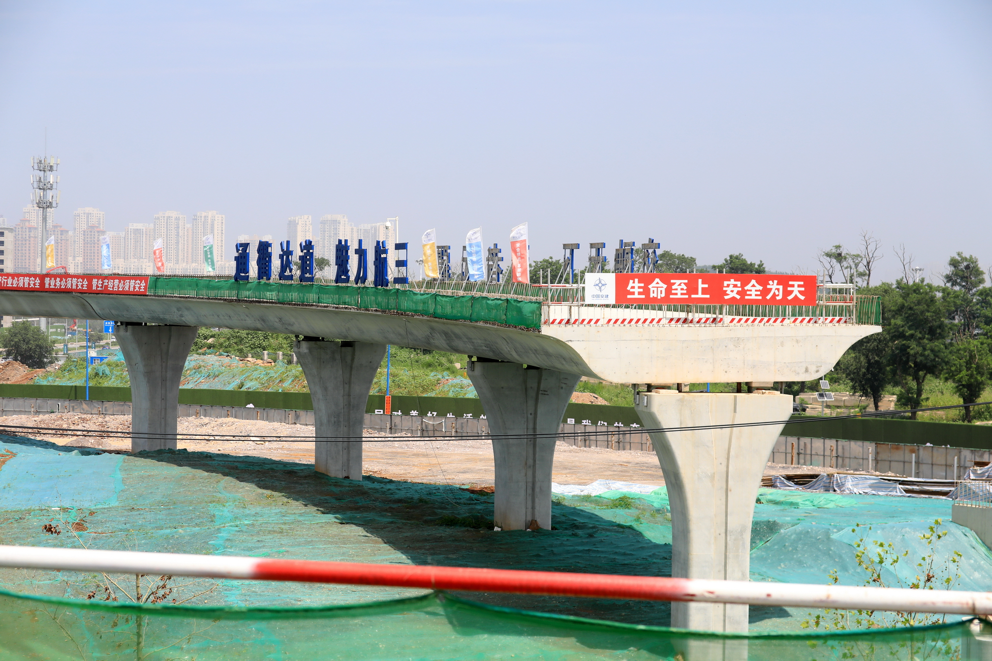 中交一航局三公司光明路项目部施工负责人于光泽介绍,截至目前,光明路延伸工程各区域施工进展顺利,2处跨铁施工主体结构均已完成。
