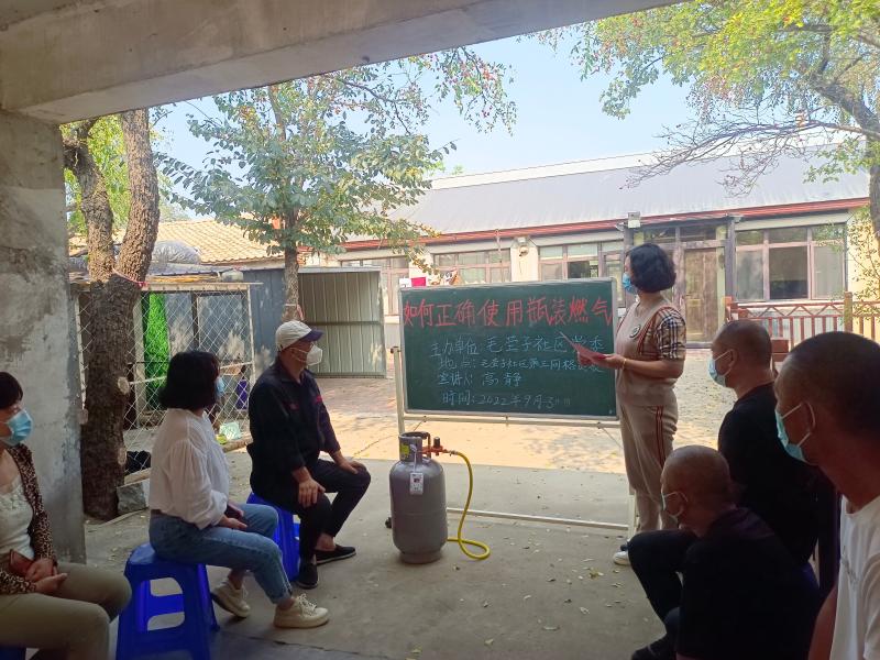 为了做好假期内安全防范工作,提高居民的安全意识,毛茔子社区就居民安全用气问题,创新宣传方式,采用社区小黑板、居民小讲堂的方式,生动形象的讲解瓶装燃气的规范使用方式,针对居民日常生活中使用燃气的错误行为进行纠正,引导居民养成规范用气的良好习惯。