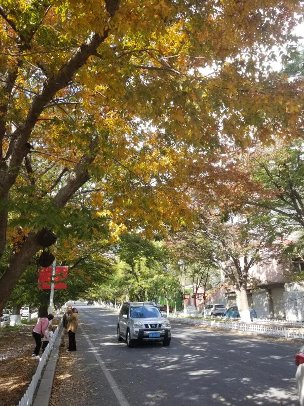 10月22-23日是太阳沟开启彩叶最佳观赏模式后的首个休息日。沐浴着辽南深秋温煦的阳光,近三万人把近郊游选在了太阳沟,历史文化街区内挤满了大巴车和自驾车。人们漫步在“满城尽是黄金甲”的新华大街、太光街、乐园街,欣赏着金黄的银杏叶。太光街上,银杏呈现一树一树的金黄,10月22日早上,大批慕名而来的市民来到街区里,约着亲友,领着父母,带着孩子,结伴游玩,摄影留念,短短的50米街区里充盈着千余人的欢歌笑语。