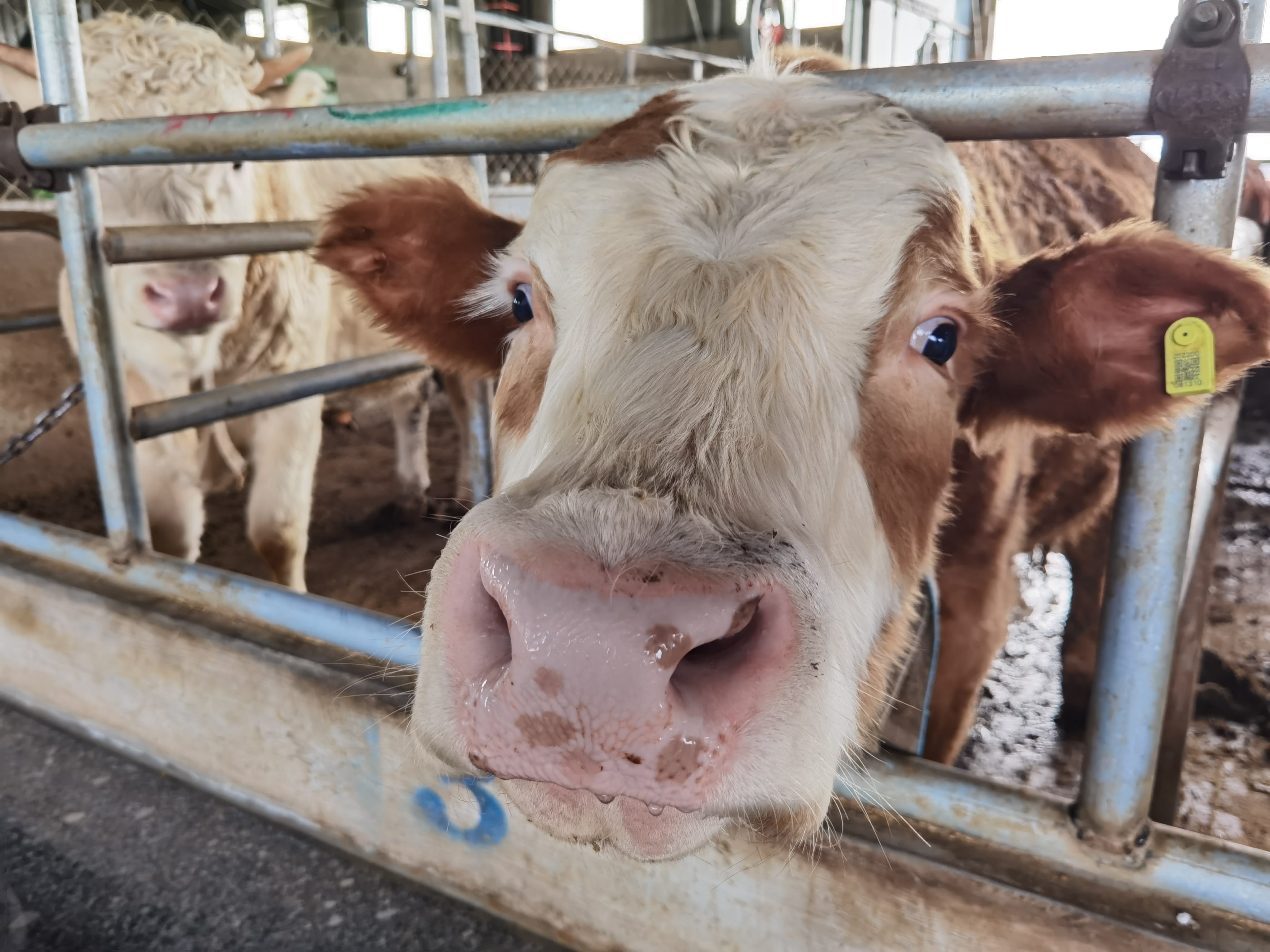 11月初,走进庄河市栗子房镇兴隆村养牛大户孙朋的养殖场,孙朋的父亲、兽医出身的孙广明正在给肉牛补充草料。1000多平方米的钢架养殖棚内,一端堆积着草料和水,另一端的饲养区150多头肉牛排列整齐,正在悠然自得地嚼食草料。走近饲养区会发现,这些肉牛的右耳都统一佩戴着电子耳标,上面还印有二维码。